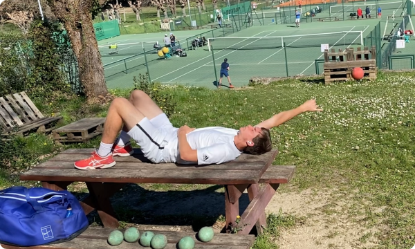 No need for court and basket of balls. The time required for the exercises is much less and the effect is much greater. You can do exercises independently to develop pronation, first serve, second serve